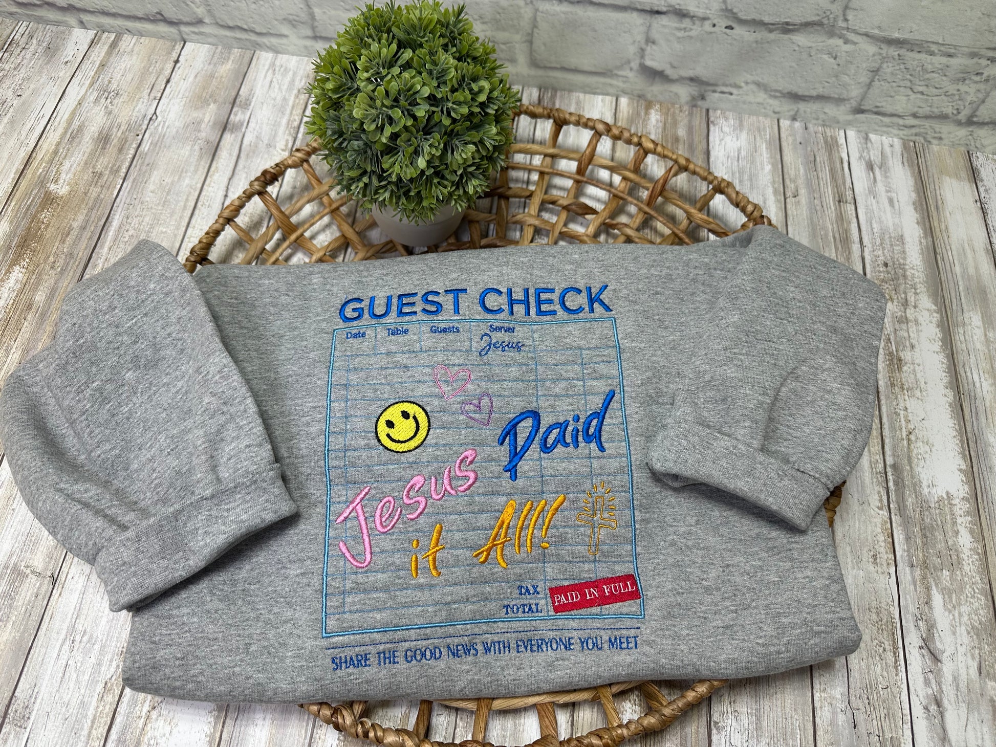 This cozy crewneck sweatshirt is designed with vintage style as this guest check says it all - Jesus Paid It All.